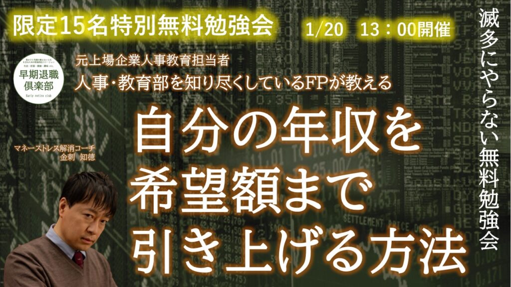 そこで2024年最初のお金の勉強会は「自分の年収に満足いっていない」と思っている方のために「年収が上がるコツ ~年収はどう決まるか~」についてお話ししようと思います。