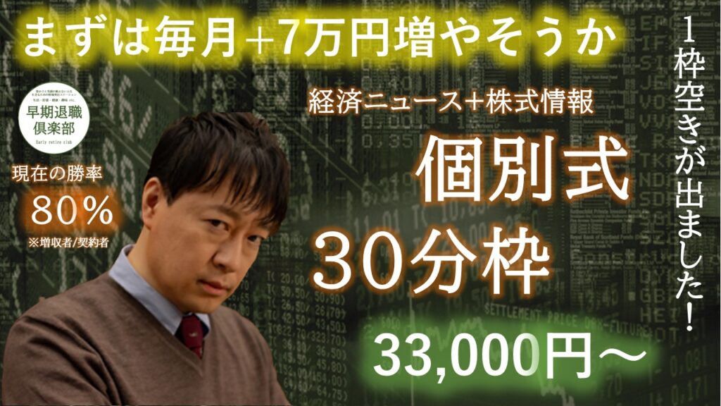 尚、インデックス投資や積立投資を教えてくれという声にもこたえるために別枠でプログラムを用意しています。ご希望の方はお問い合わせください。