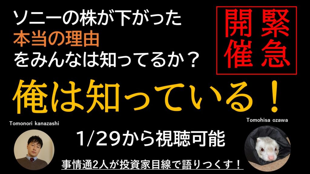 今回はソニー株保有歴8年の金刺と業界に詳しい小澤氏が「今回の件」について語り倒します。